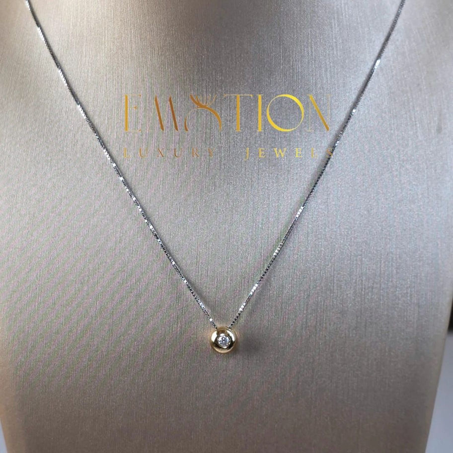 Collana Punto Luce in Oro Bianco 750 con Cipollina in Oro Giallo e Diamante