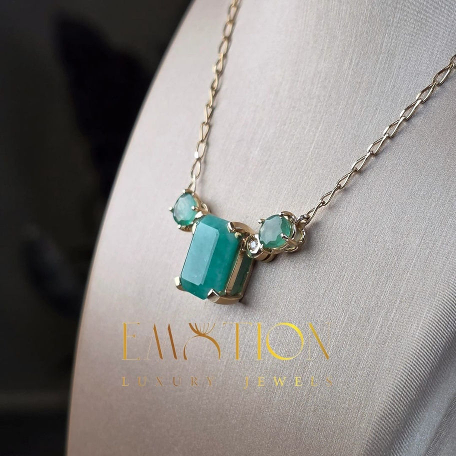 Questo girocollo in oro giallo 18 carati presenta al centro una straordinaria radice di smeraldo da 6,13 carati, protagonista assoluta del design. La sua tonalità intensa e profonda viene esaltata da due smeraldi laterali taglio ovale per un totale di 0,42 carati, che creano equilibrio e armonia visiva.